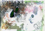 By using different components that are current in my aesthetic interests, i have started a series of compositions that encompass written phrases or sentences, cells, shapes and colours. These have resulted in systematic drawings that, although having rules of content, come from immediate bodily responses that influence the direction of the drawings. The shapes and colours that come from these are thus influenced by the logical process of ‘balance’, that sees the reason of the aesthetic eye to determine their positioning and shade.