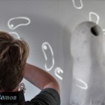 This installation resolved the literal connection between the micromen animation and the Foramen sculpture. It saw a narrative take place between the character of this sculpture and the cells that may inhabit it. By projecting the animation on top of this Foramen, the form is then completely taken over by the picture of its own makings, meaning there can be no denial of its obvious part in life’s possibility.